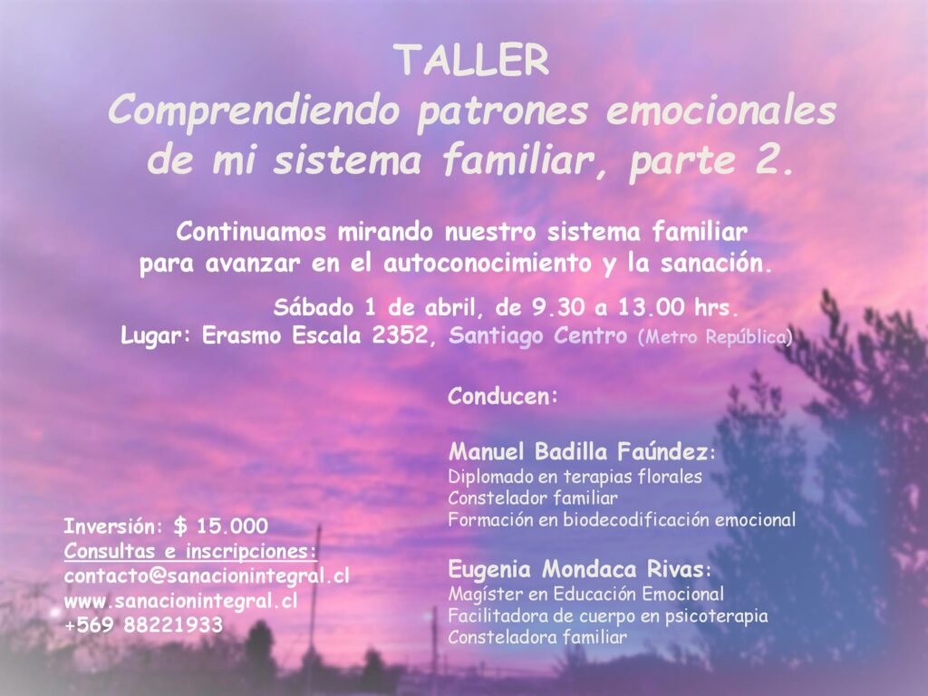 Consulta e inscripciones a contacto@sanacionintegral.cl o al +569 88221933