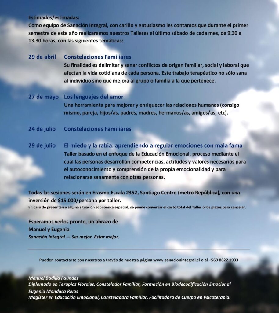 Consulta e inscripciones a contacto@sanacionintegral.cl
